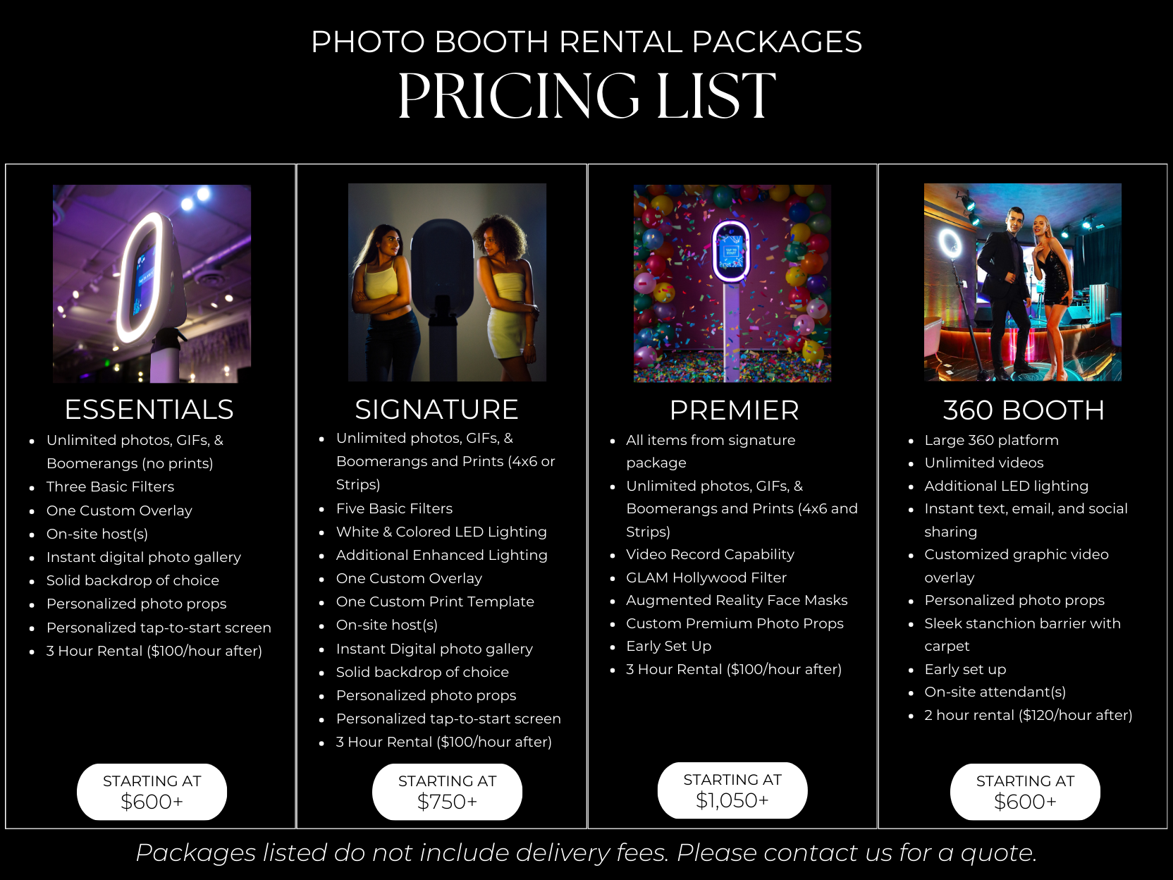 If you don't see a package that quite fits what your event needs are, please contact us for a custom quote.
